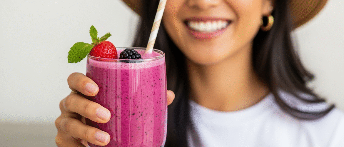 This shake is rich in vitamins, antioxidants, and plant-based protein—perfect for immune support and hydration on hot summer days.